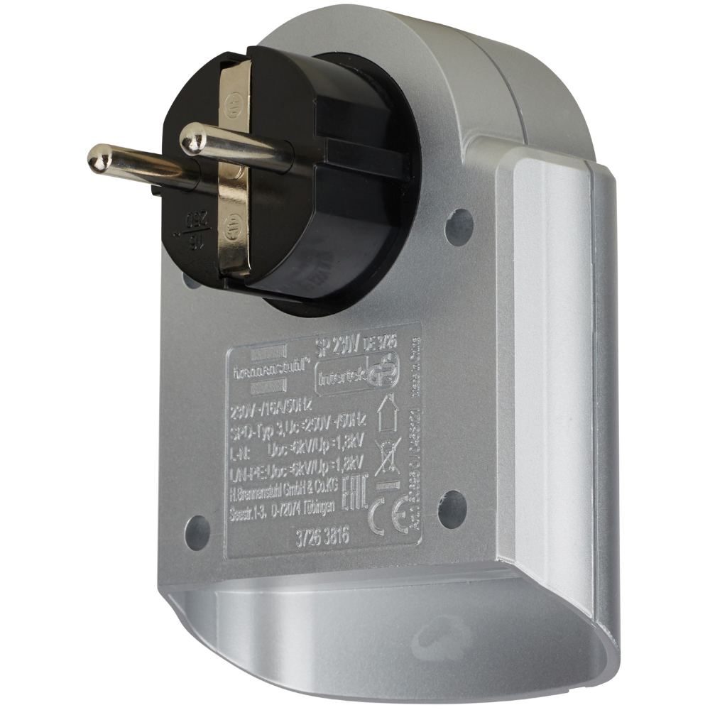 Αντάπτορας Brennenstuhl με 1 Σούκο Πρίζα Ένδειξη Προστασίας 230V και Προστασίας απο Υπέρταση εως 13.500A Ασημί