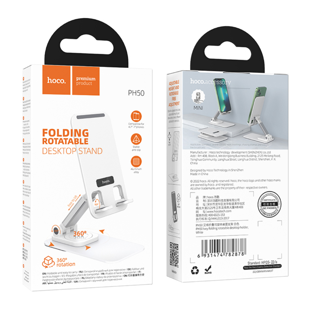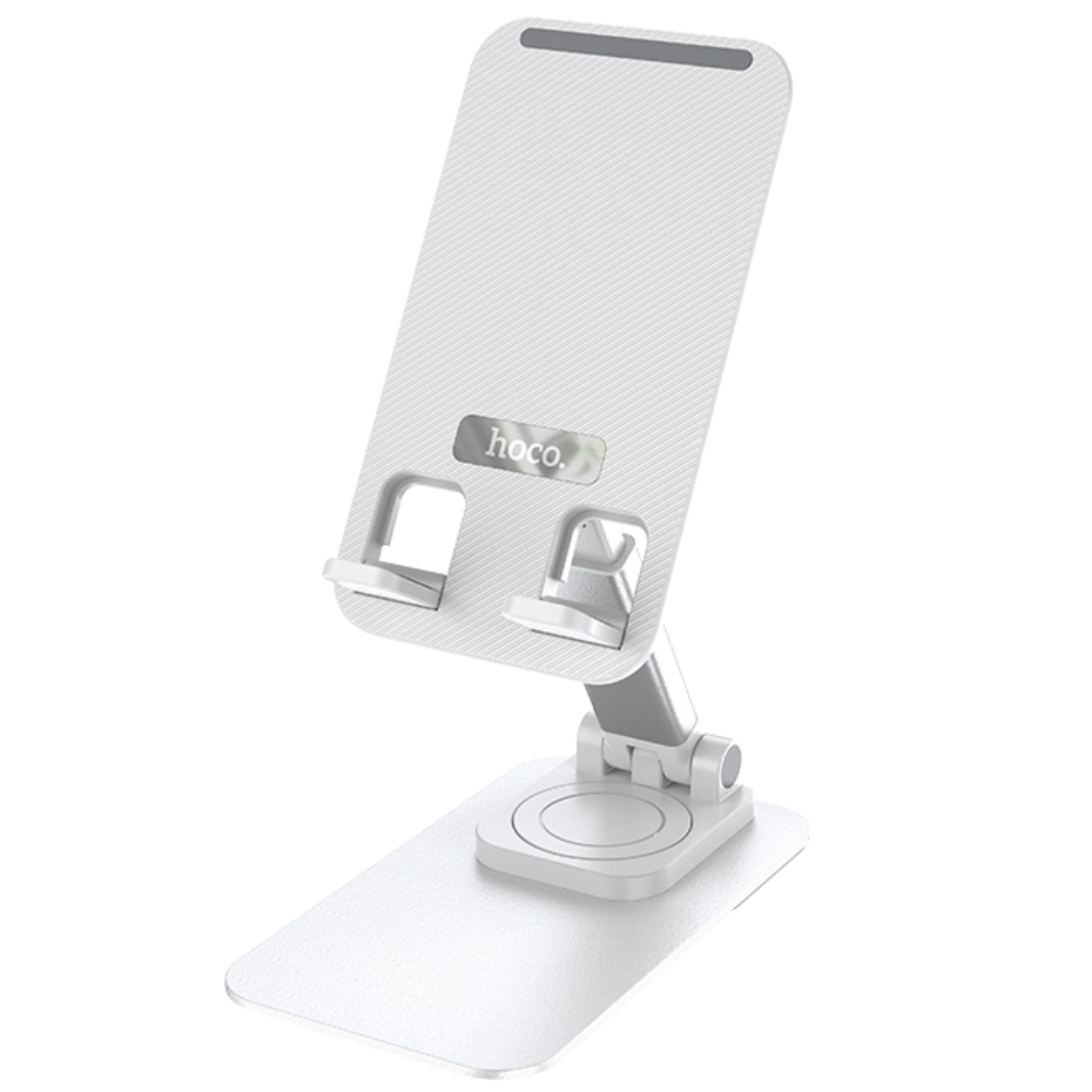 Βάση Στήριξης Επιτραπέζια Αλουμινένια Hoco PH50 Ivey 360° για συσκευές 4.5″-7″ και Επεκτεινόμενο Βραχίονα Λευκή