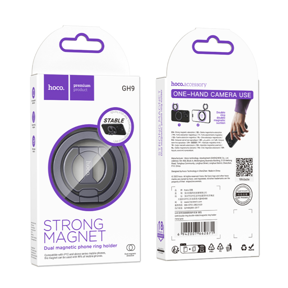 Βάση Στήριξης Μαγνητική Δαχτυλίδι Hoco GH9 για Κινητά Τηλέφωνα με Διπλό Μαγνήτη Ασημί