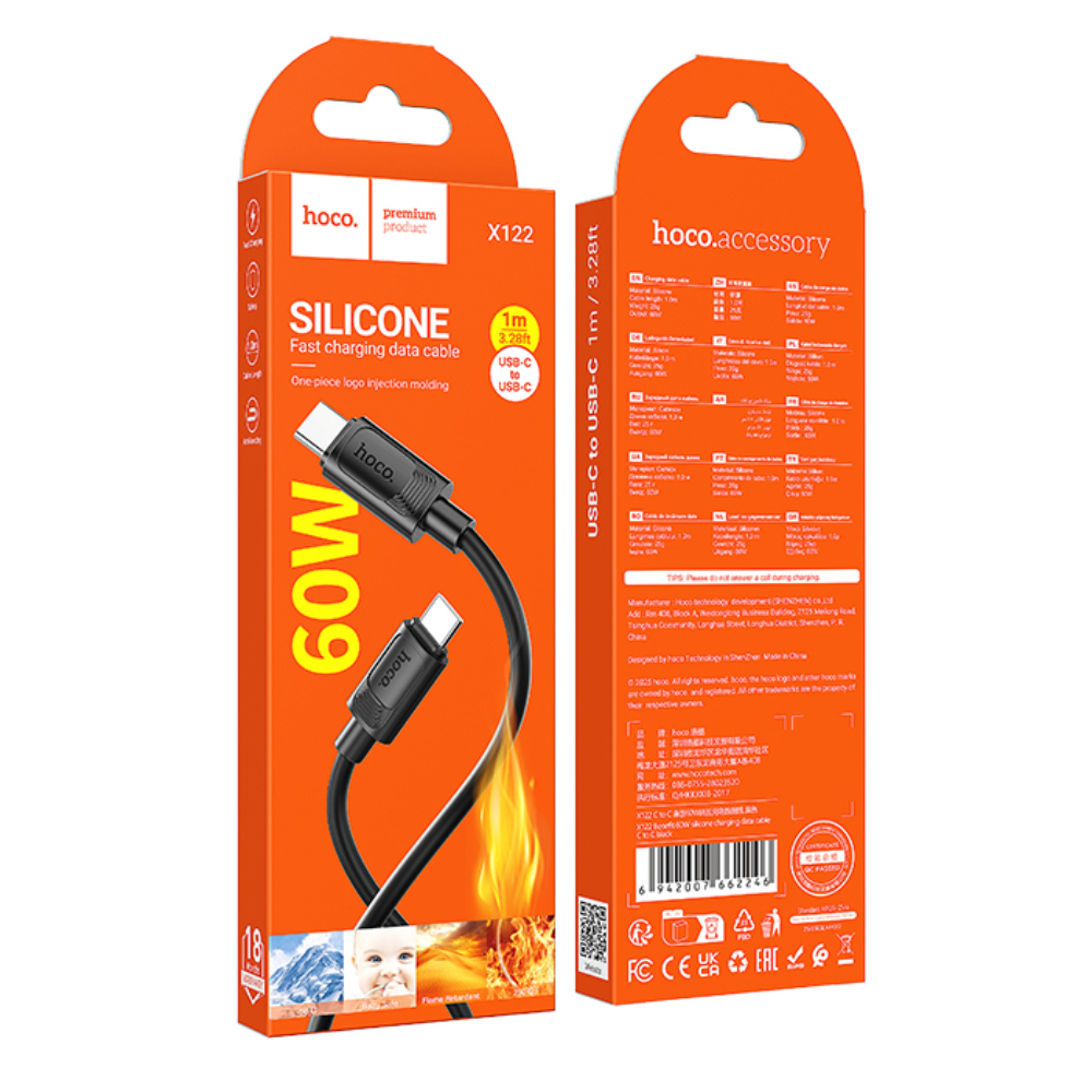 Καλώδιο σύνδεσης X122 Benefit USB-C σε USB-C PD60W 3A για Γρήγορη Φόρτιση Μαύρο 1m