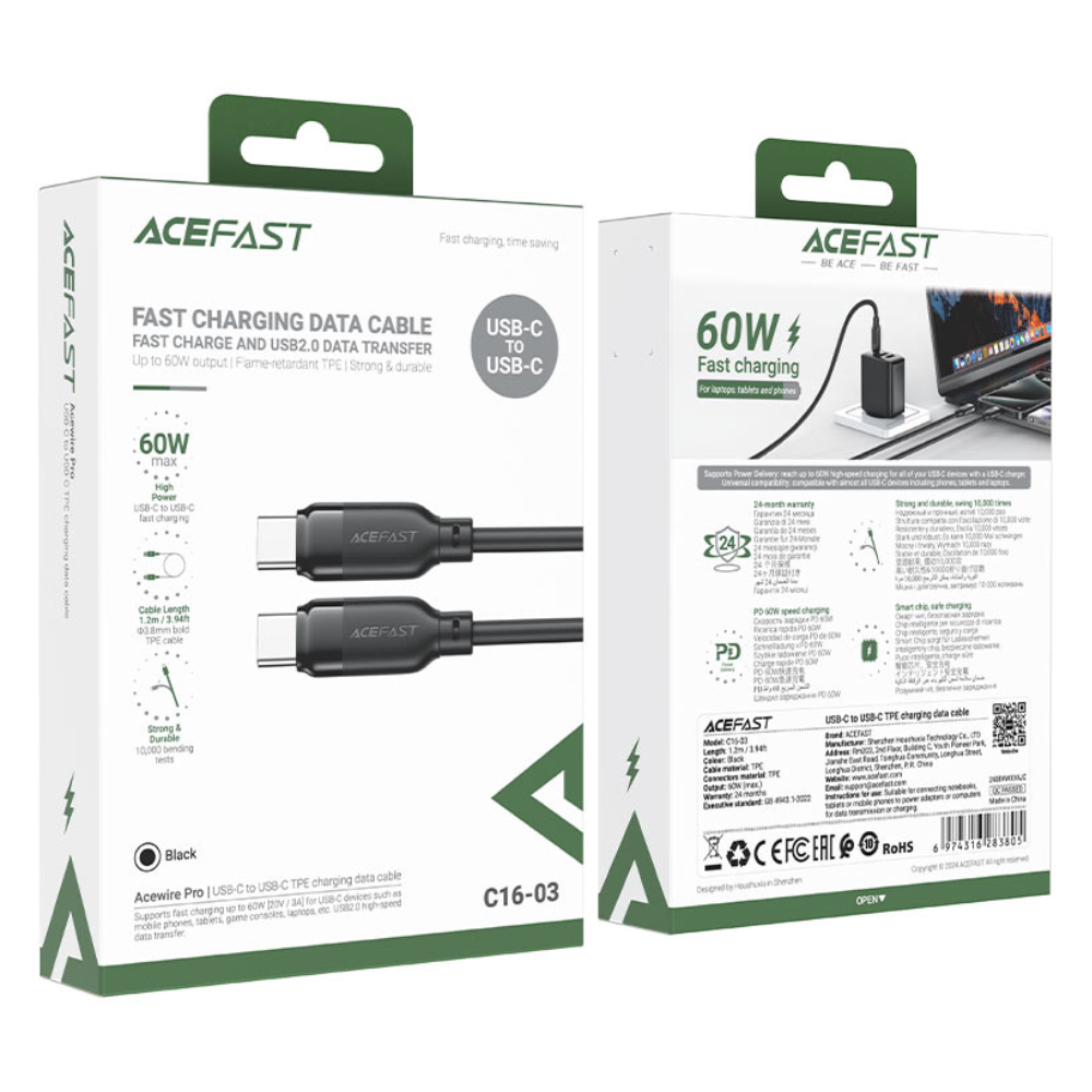 Καλώδιο Acefast C16-03 USB-C σε USB-C 60W 3A USB2.0 Μαύρο 1.2m