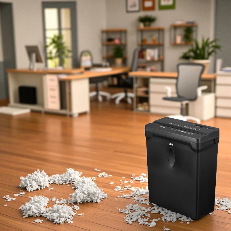 Ο νέος καταστροφέας DELI ET014  είναι η ιδανική λύση  χώρο για  μικρή  χρήση . Καταστρέφει έως και 5 φύλλα/φορά  σε κομφετί διάστασης 4*33mm . Εύκολο στη χρήση, συμπαγής κατασκευή. Διαθέτει κάδο 10 λίτρων με παράθυρο για έλεγχο των αποκομμάτων.  Φιλικό προς το περιβάλλον: δεν απαιτεί πλαστικές σακούλες.