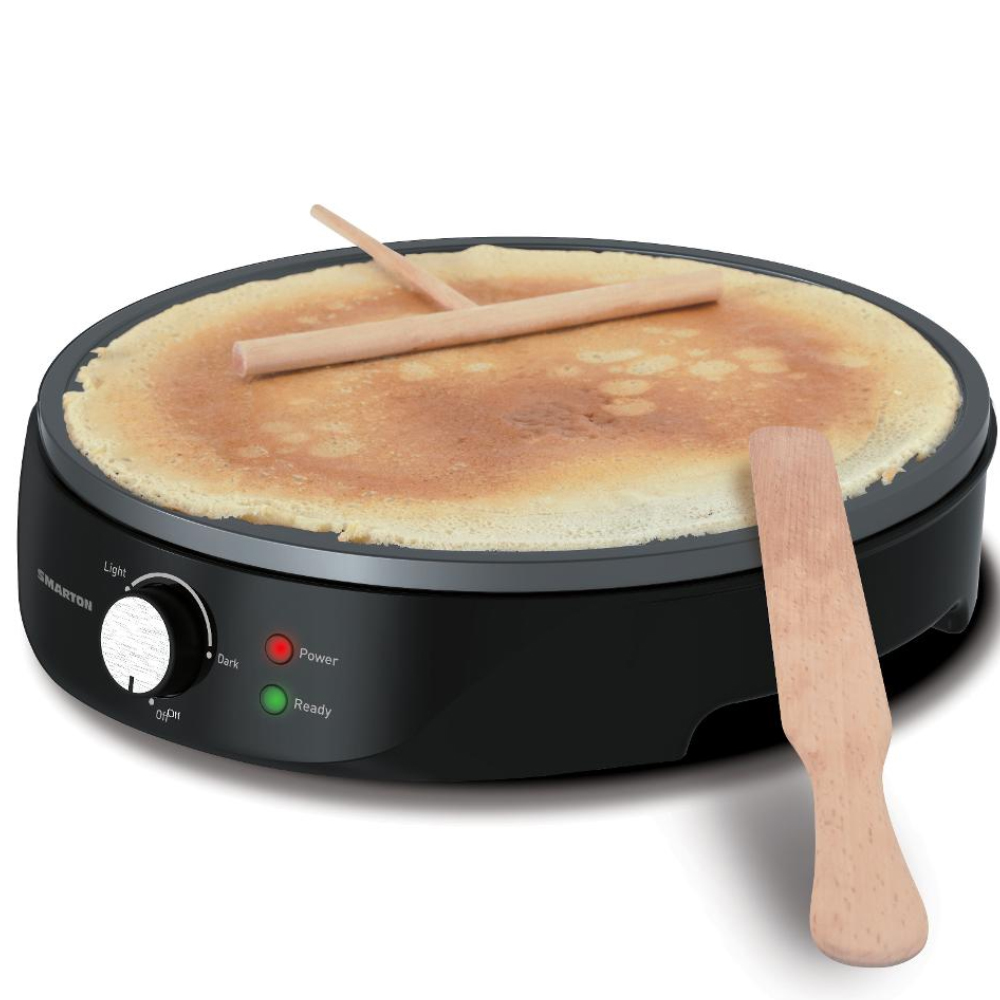 Η κρεπιέρα Smarton CM 300 με ισχύ 1200W και πλάκα διαμέτρου 30 cm διαθέτει αντικολλητική επιφάνεια για εύκολο ψήσιμο χωρίς κολλήματα, ρυθμιζόμενη θερμοκρασία για τέλειο αποτέλεσμα σε κάθε συνταγή, ξύλινα αξεσουάρ όπως σπάτουλα και αναδευτήρα για άνετη προετοιμασία και αντιολισθητικά ποδαράκια για σταθερή χρήση.