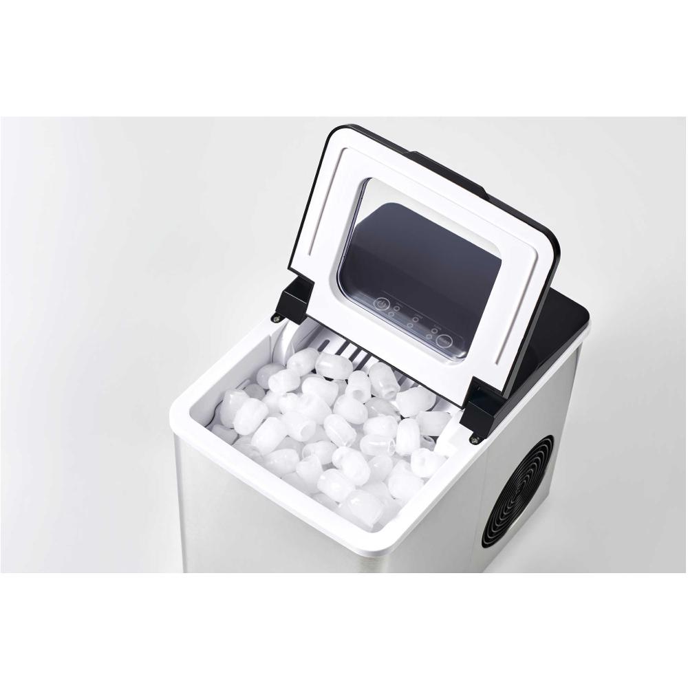 Η Sencor SIM 3400SS είναι μια πρακτική και κομψή παγομηχανή, ιδανική για το σπίτι, το εξοχικό ή μικρές συγκεντρώσεις. Διαθέτει ανθεκτικό ανοξείδωτο περίβλημα και λειτουργεί εύκολα με το πάτημα ενός κουμπιού. Παράγει έως 12 κιλά παγάκια την ημέρα, με 9 τεμάχια ανά κύκλο, σε στρογγυλεμένο σχήμα που λιώνει αργά και είναι ιδανικό για ποτά. Κάθε κύκλος διαρκεί μόλις 7 έως 15 λεπτά. Ο κάδος συλλογής χωρά έως 500g παγάκια, ενώ το διαφανές καπάκι επιτρέπει να παρακολουθείς τη διαδικασία.Η παγομηχανή διαθέτει αυτόματη παύση λειτουργίας όταν γεμίσει ο κάδος ή όταν αδειάσει το δοχείο νερού, χωρητικότητας 1,8 λίτρων. Περιλαμβάνει επίσης λειτουργία καθαρισμού, χαμηλή στάθμη θορύβου και βαλβίδα αποστράγγισης για εύκολη εκκένωση. Στη συσκευασία περιλαμβάνεται σέσουλα και αποσπώμενο φίλτρο νερού για πρακτική και υγιεινή χρήση.