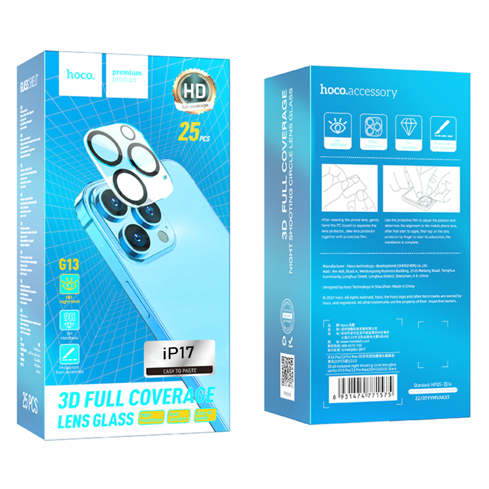 Προστασία Κάμερας Hoco 3D All-Inclusive Night Shooting G13 για Apple iPhone 16/16 Plus Σετ 25τεμ.