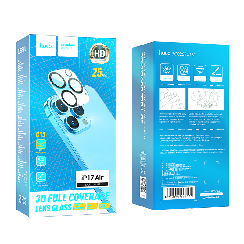 Προστασία Κάμερας Hoco G13 3D Night Shooting Circle Lens Glass για Apple iPhone Air Μαύρο 25 Τεμ.
