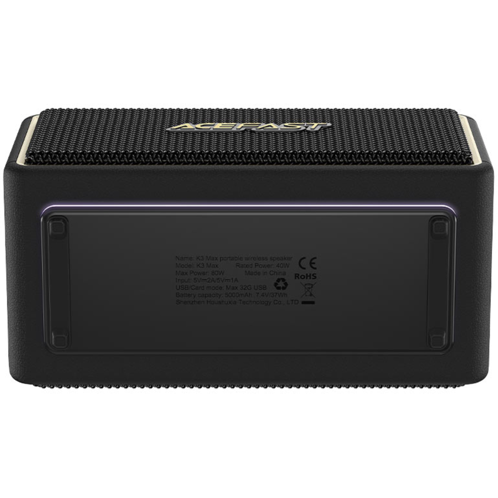 Το φορητό ηχείο Acefast K3 Max 80W προσφέρει εντυπωσιακή ισχύ ήχου και βαθύ μπάσο, με υποστήριξη TWS για ασύρματη διασύνδεση δύο ηχείων και ενσωματωμένο μικρόφωνο HD για καθαρές κλήσεις. Διαθέτει μπαταρία 5000mAh που παρέχει έως και 20 ώρες συνεχούς λειτουργίας, τρεις δυναμικές RGB φωτεινές επιδράσεις και πολύχρωμο φωτισμό που ενισχύει την εμπειρία ακρόασης. Υποστηρίζει πολλαπλές λειτουργίες αναπαραγωγής, όπως USB flash drive, Bluetooth, κάρτα TF και είσοδο AUX, ενώ ο σχεδιασμός με πιστοποίηση IPX6 προσφέρει αντοχή στο νερό, καθιστώντας το ιδανικό για χρήση σε εσωτερικούς και εξωτερικούς χώρους.