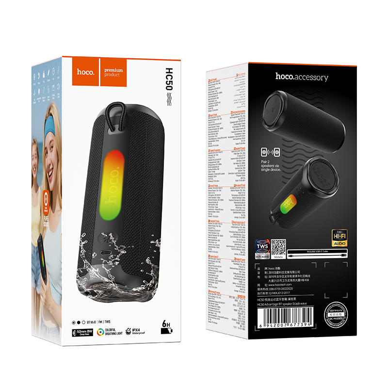 Φορητό Ηχείο Wireless Hoco HC50 Advantage v6.0 Hi-Fi Audio TWS 8W 1200mAh FM IPX4 Μαύρο