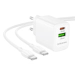 Φορτιστής Ταξιδίου Borofone BN29 Fuente GaN με 1xUSB-C PD30W και 1xUSB-A QC3.0A + Καλώδιο Φόρτισης USB-C σε USB-C Λευκός