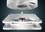 Ο ανεμιστήρας προσφέρει μεγαλύτερη απόδοση σε χαμηλές ταχύτητες με υψηλότερη ροή αέρα από τα προηγούμενα μοντέλα και στατική πίεση σε μόλις 25 dB(A) – ιδανικός για αθόρυβη, ισχυρή ψύξη.