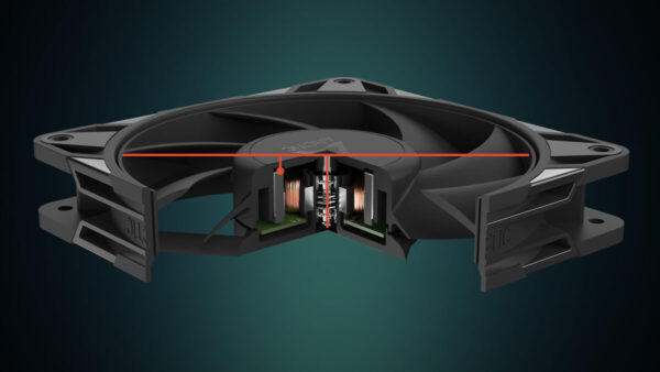Ο ανεμιστήρας προσφέρει μεγαλύτερη απόδοση σε χαμηλές ταχύτητες με υψηλότερη ροή αέρα από τα προηγούμενα μοντέλα και στατική πίεση σε μόλις 25 dB(A) – ιδανικός για αθόρυβη, ισχυρή ψύξη.