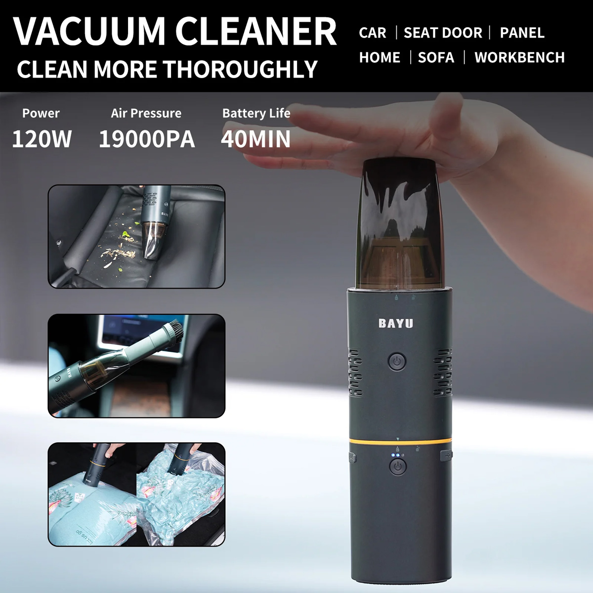 BAYU car kit με εκκινητή μπαταρίας/συμπιεστή αέρος/πιστόλι πλυσίματος/σκουπάκι αυτοκινήτου E-Pro C