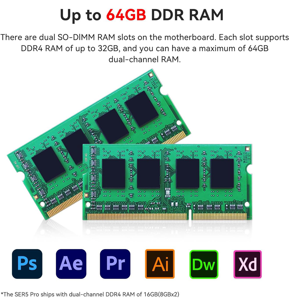 Με οκταπύρηνο επεξεργαστή AMD Ryzen 5 5625U, μνήμη RAM 16GB, 500GB M.2 SSD και προεγκατεστημένο λειτουργικό Windows 11 pro, το SER5 Pro προσφέρει πολύ ομαλή εμπειρία λειτουργίας για να εργαστείτε, να δείτε ταινίες, να παίξετε παιχνίδια ή να περιηγηθείτε στο διαδίκτυο, από το σπίτι ή το γραφείο.
