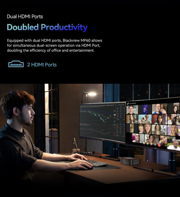 Το Blackview Mini PC Intel N150 16GB+1TB είναι η ιδανική επιλογή για όσους θέλουν ένα ισχυρό, μικρό και ευέλικτο υπολογιστικό σύστημα, κατάλληλο για επαγγελματική χρήση, streaming και καθημερινή ψυχαγωγία.