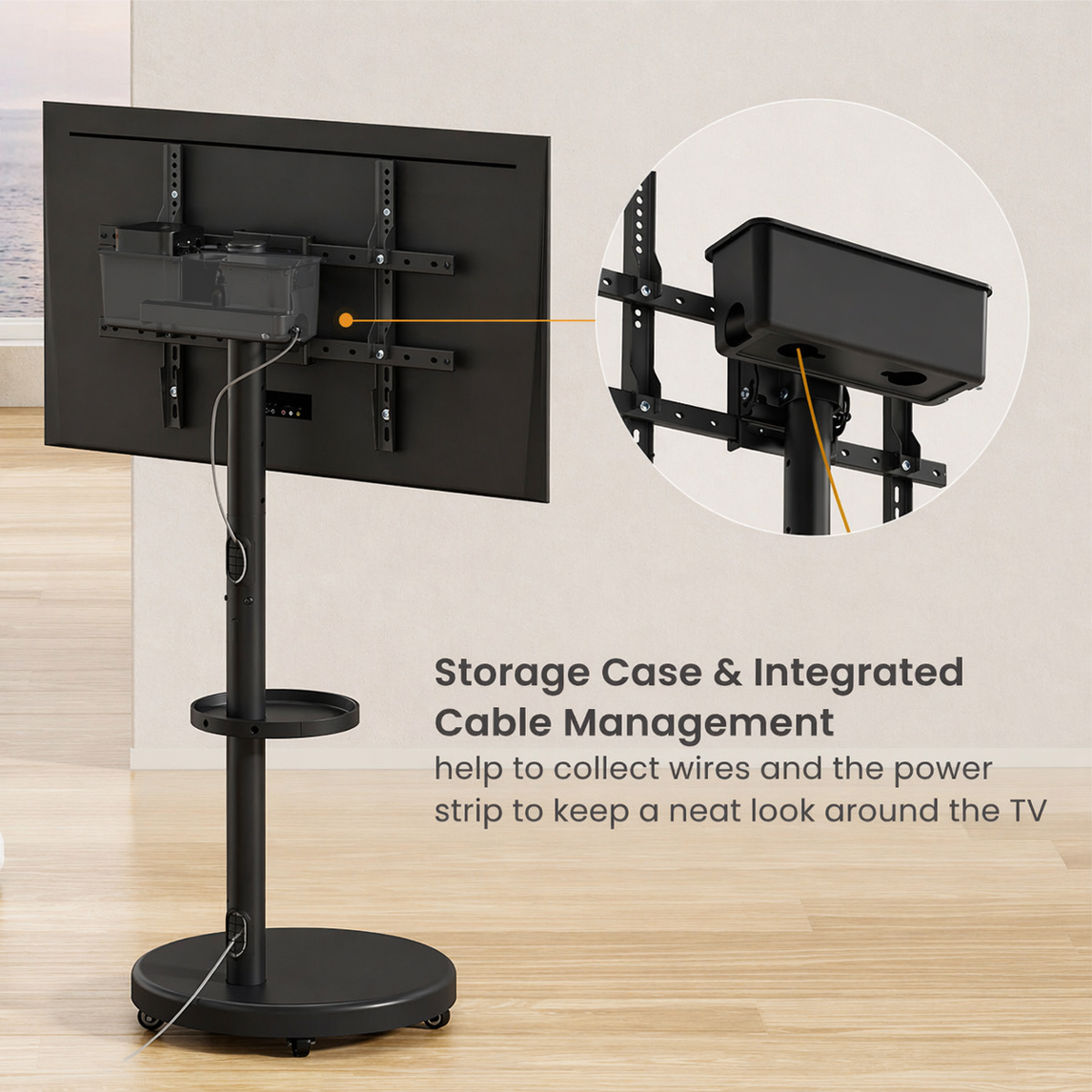 BRATECK βάση τηλεόρασης δαπέδου FS38-46TWE, 37-86″, έως 50kg, με ράφι & cable management, ροδάκια, μαύρη