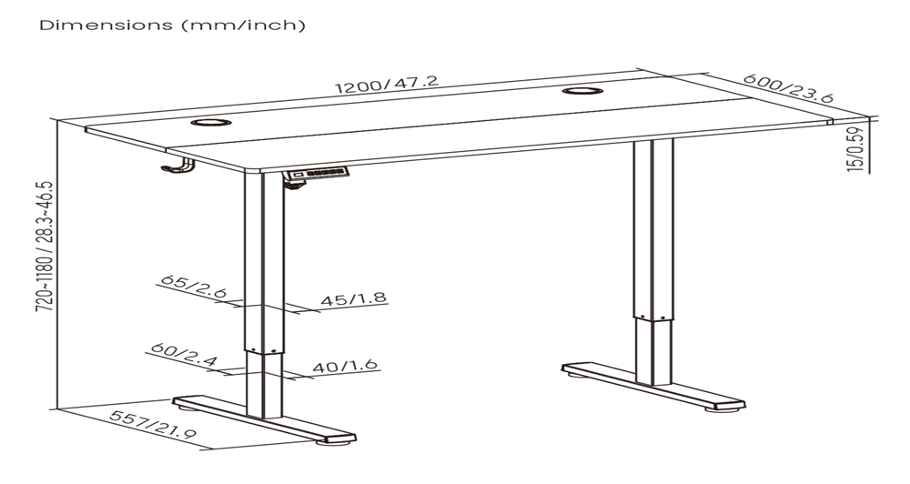 -εύρος ύψους γραφείου: 720~1180mm