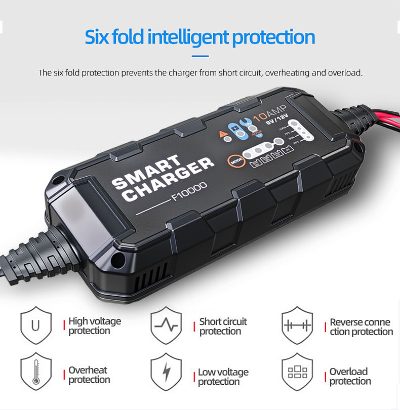 Ο BYGD F10000 είναι ένας αξιόπιστος και έξυπνος φορτιστής–συντηρητής μπαταρίας, ιδανικός για αυτοκίνητα, μοτοσυκλέτες και άλλα οχήματα με μπαταρίες 6V ή 12V.