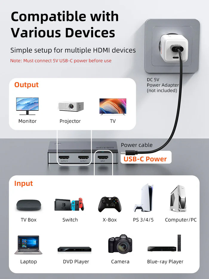 Το HDMI splitter της Cabletime επιτρέπει την σύνδεση 1x συσκευής εισόδου όπως PC σε 2x συσκευές εξόδου όπως οθόνες ή το αντίστροφο.