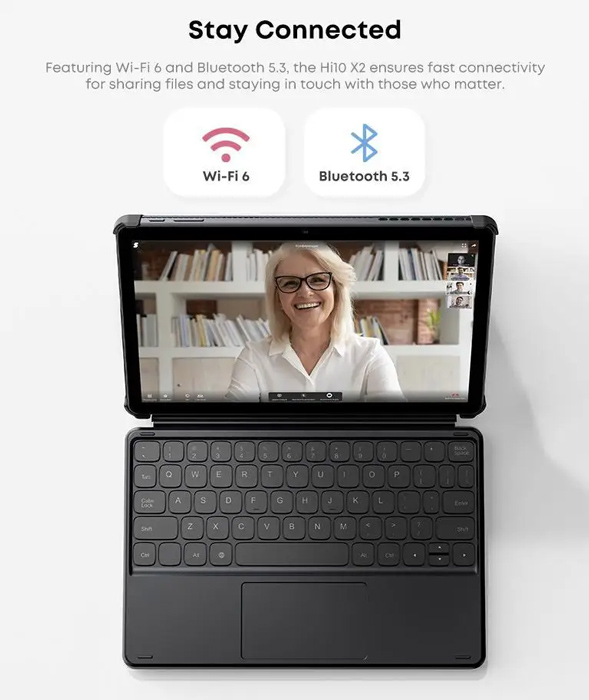 Εκτός από tablet, το Hi10 X2 μπορεί να λειτουργήσει και ως μίνι laptop, καθώς συνοδεύεται από αποσπώμενο πληκτρολόγιο και θήκη με kickstand για να εργάζεστε χωρίς να χρειάζεται να κρατάτε το tablet στα χέρια.