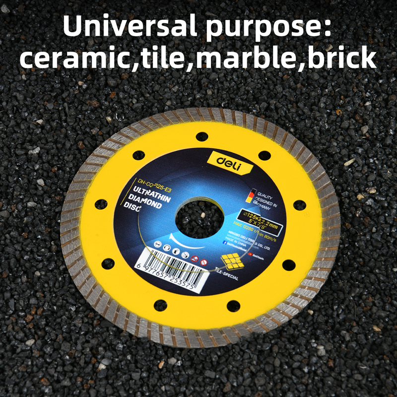 Διαμαντέ δίσκος κοπής ultrathin της Deli σχεδιασμένος για γρήγορη και αποτελεσματική κοπή δομικών υλικών. Προσφέρει αξιόπιστη απόδοση τόσο σε υγρές όσο και σε στεγνές εφαρμογές.
