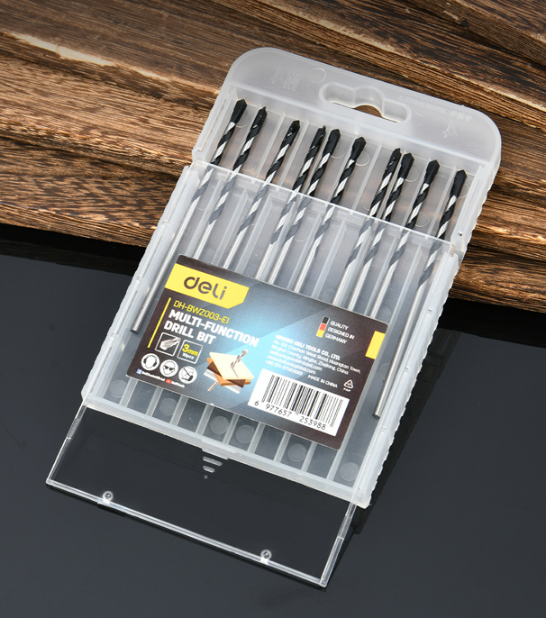 Σετ τρυπάνια της Deli κατάλληλα για χρήση σε επιφάνειες από πέτρα, μέταλλο, ξύλο, μάρμαρο κ.α. Η συσκευασία περιλαμβάνει 10 τρυπάνια.