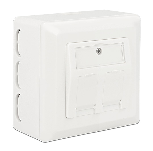 Οπίσθιο κουτί της Delock, μπορεί να χρησιμοποιηθεί για την επιφανειακή τοποθέτηση σε πρίζες τοίχου με υποδοχές των 60mm όπως της πρίζας τοίχου Delock Keystone 86202.