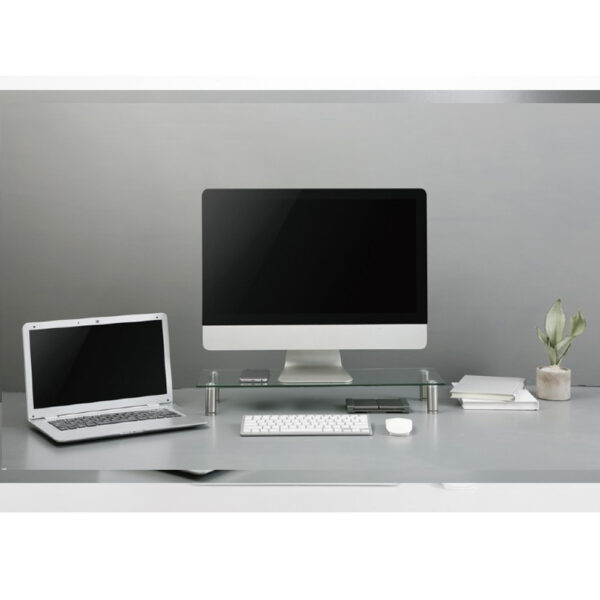 Η μεσαία γυάλινη βάση GEMBIRD Glass Monitor Stand Medium σας επιτρέπει να τοποθετήσετε την οθόνη ή το laptop σας στο ιδανικό ύψος, μειώνοντας την καταπόνηση του λαιμού και των ματιών. Ο κομψός μοντέρνος σχεδιασμός από σκληρυμένο γυαλί προσθέτει στιλ σε κάθε γραφείο.
