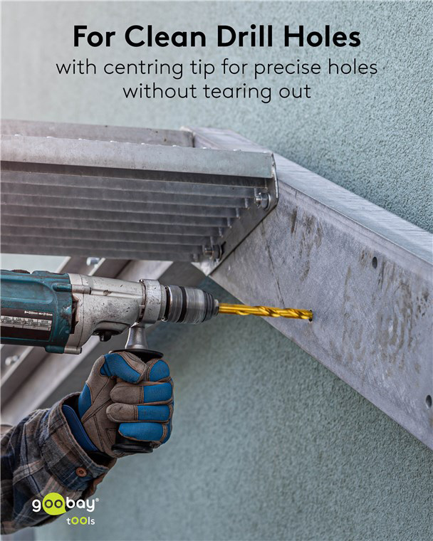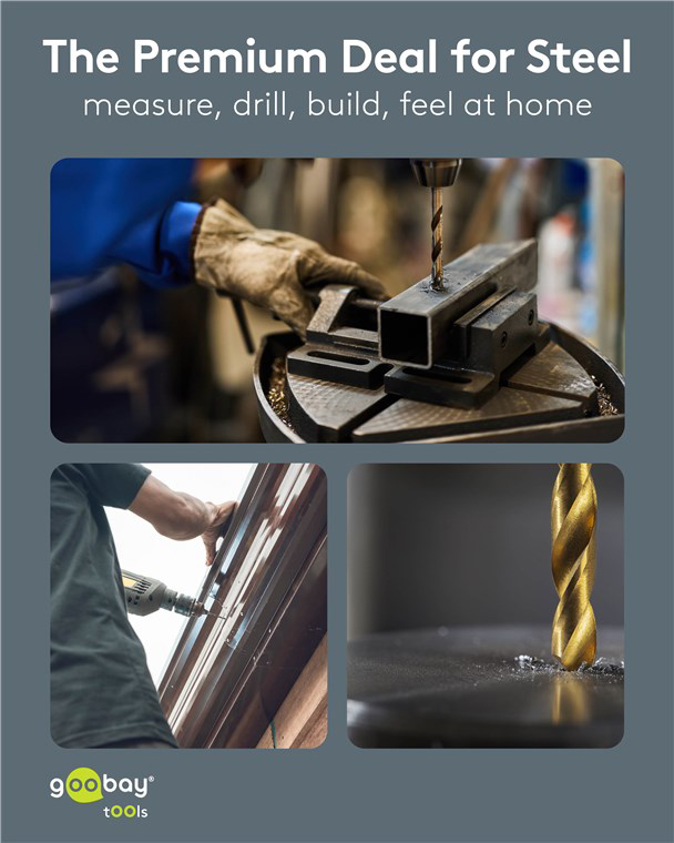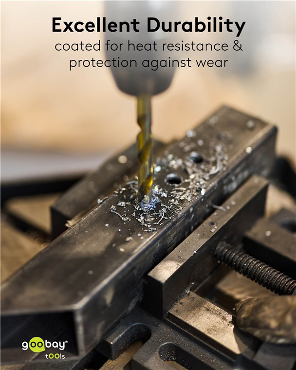 Σετ τρυπάνια της Goobay που αποτελείται από 15 τρυπάνια σε διαφορετικά μεγέθη, κατάλληλα για χρήση σε μεταλλικές επιφάνειες.