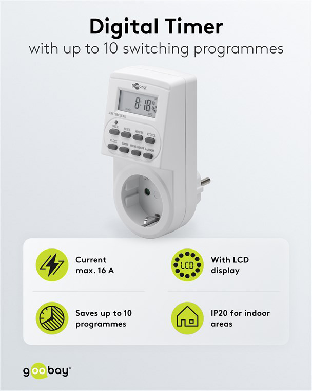 GOOBAY ψηφιακός χρονοδιακόπτης ρεύματος 51277, λευκός