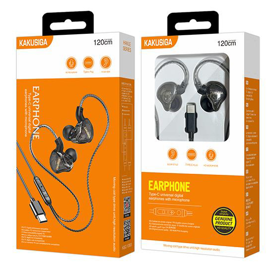 KAKUSIGA earphones με μικρόφωνο KSC-1300, USB-C σύνδεση, 10mm, 1.2m, μαύρα