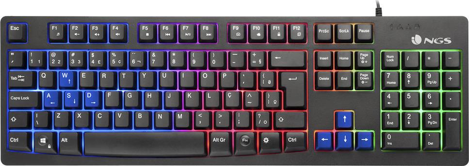 Gaming πληκτρολόγιο της εταιρείας NGS με RGB φωτιζόμενα πλήκτρα σε γλώσσα αγγλικά US. Χρησιμοποιεί τεχνολογία μεμβράνης, όπως και η πλειοψηφία των συμβατικών πληκτρολογίων της αγοράς. Σε αντίθεση μ…