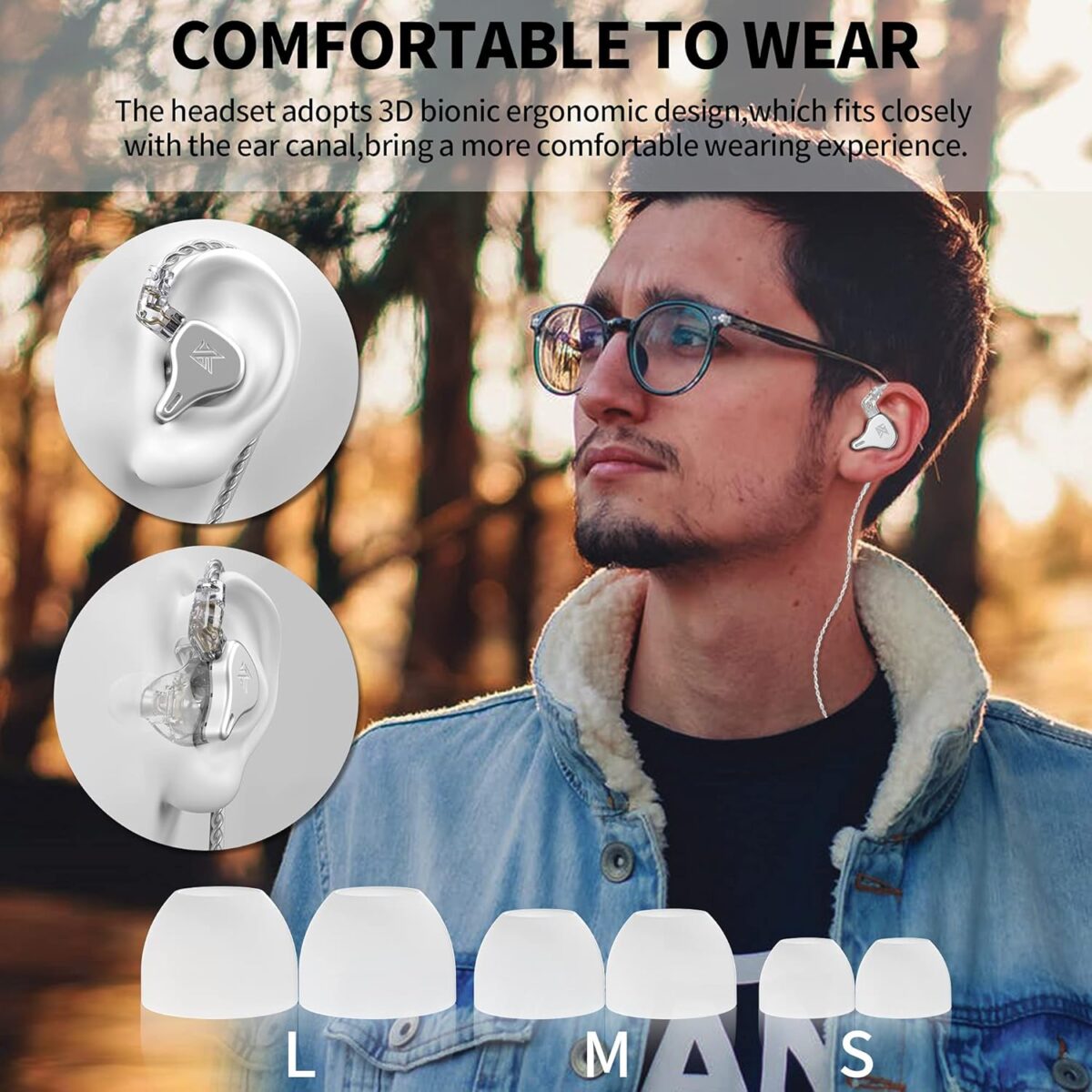 KZ DQ6 Silver With Mic – IEM 3,5 HBB Tuned Improved In Ear Monitor Earphones, 3DD Dynamic