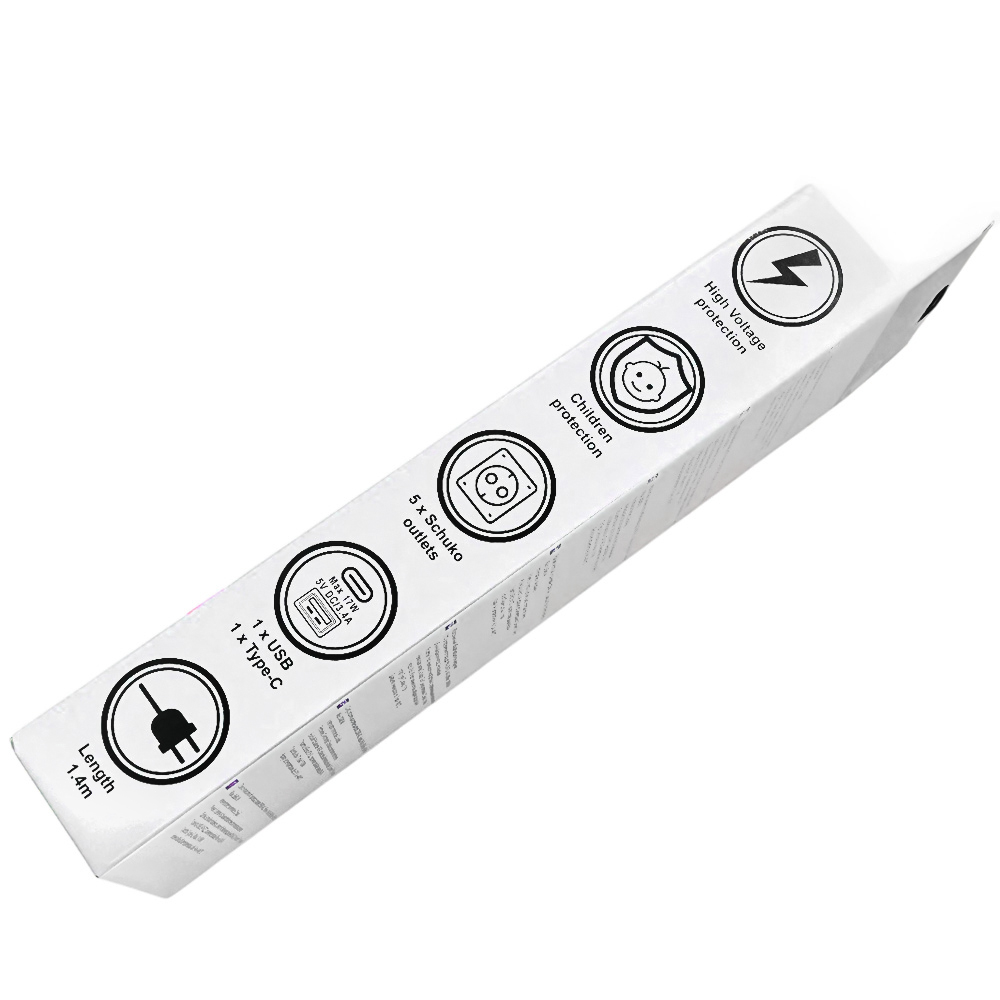 Το LAMTECH Surge Protector συνδυάζει ασφάλεια, ισχύ και σύγχρονη τεχνολογία φόρτισης. Με 5 πρίζες Schuko, 1 θύρα USB και 1 θύρα Type-C, σας επιτρέπει να τροφοδοτείτε ταυτόχρονα οικιακές συσκευές, υπολογιστές, συστήματα ψυχαγωγίας αλλά και να φορτίζετε απευθείας το smartphone ή το tablet σας – γρήγορα και με ασφάλεια.