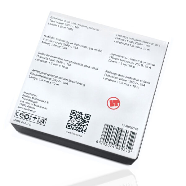 Το Πολύπριζο Προέκτασης LAMTECH έχει σχεδιαστεί με αυξημένα χαρακτηριστικά ασφαλείας, όπως ενσωματωμένο μηχανισμό παιδικής προστασίας, καθιστώντας το ιδανική επιλογή για σπίτια με μικρά παιδιά. Το κομψό λευκό φινίρισμά του ενσωματώνεται αρμονικά σε κάθε μοντέρνο χώρο, προσφέροντας λειτουργικότητα χωρίς να θυσιάζει το στυλ.
