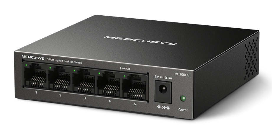 Το desktop switch της Mercusys σας επιτρέπει να επεκτείνετε το ενσύρματο δίκτυο σας με 5x Gigabit θύρες.