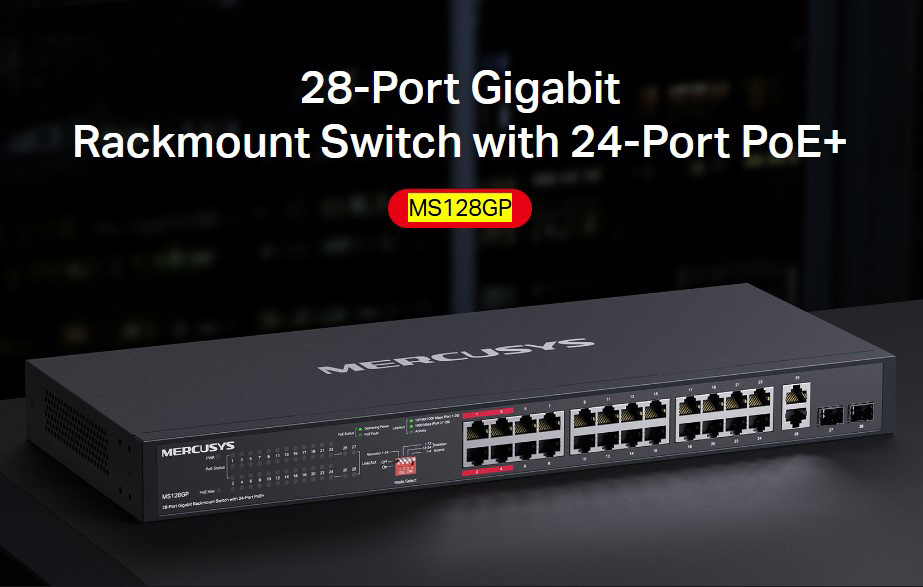 MERCUSYS rackmount switch MS128GP, 28x Gigabit θύρες, PoE+, V1.0