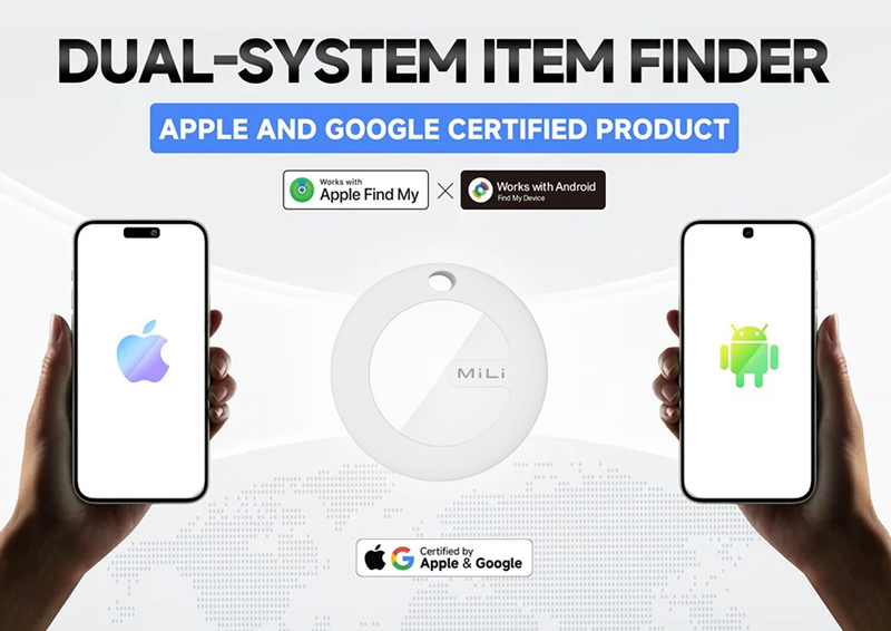 Είναι συμβατό με iOS και Android συσκευές και λειτουργεί με την εφαρμογή Apple Find My και Google Find My Device.