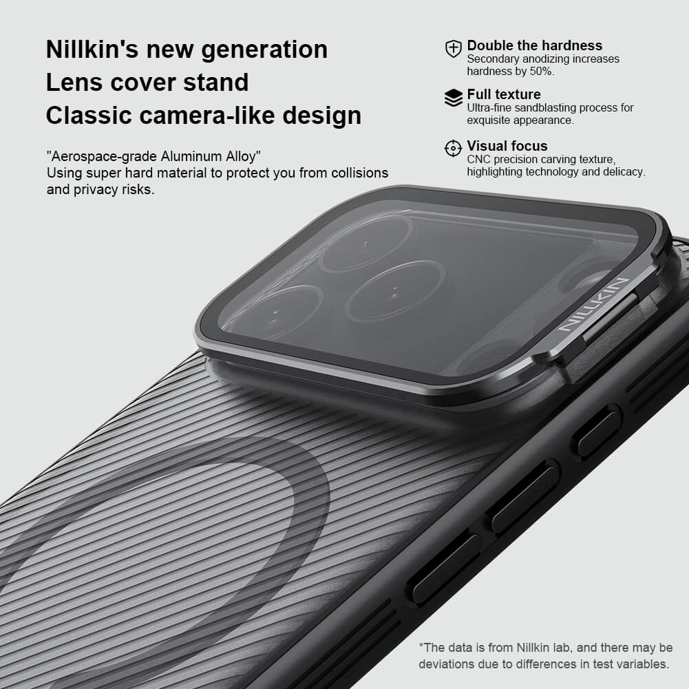 Η θήκη της σειράς CamShield Prop Magnetic της Nillkin χαρακτηρίζεται από την ενισχυμένη προστασία που προσφέρει, το σκληρό υλικό κατασκευής της με την ανάγλυφη επιφάνεια, αλλά και την έξτρα προστασία των καμερών και της ιδιωτικότητας σας, χάρη στο ανοιγόμενο μεταλλικό καπάκι καμερών, το οποίο μπορεί να χρησιμοποιηθεί και ως stand.