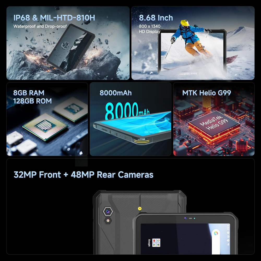 ONERUGGED tablet T1, 8.68″, 8/128GB, 4G, 8000mAh, IP68/MIL-STD 810H/Atex Zone 2, μαύρο