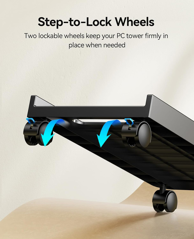 Πλαστική βάση με ροδάκια της ORICO, η οποία διευκολύνει την μετακίνηση της κεντρικής μονάδας του υπολογιστή σας.