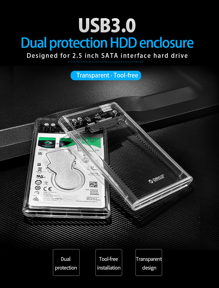 ORICO εξωτερική θήκη για 2.5″ HDD 2139U3, USB 3.0, έως 4TB, διάφανη