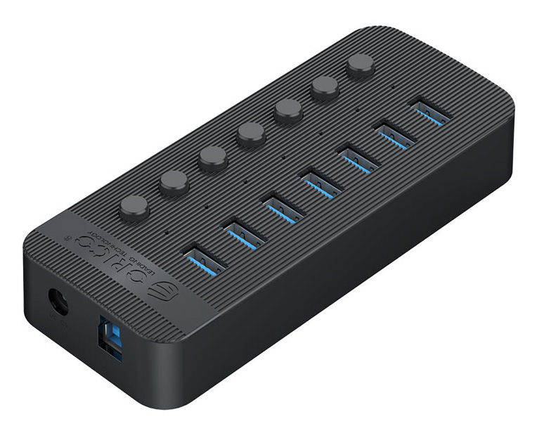 ORICO USB hub CT2U3-7AB με διακόπτες, 7x θυρών, USB 3.0, 5Gbps, USB σύνδεση, μαύρο