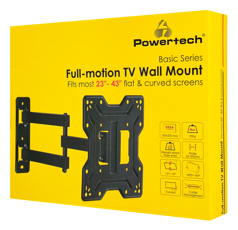 POWERTECH επιτοίχια βάση τηλεόρασης PT-1556, 23-43″, έως 30kg, full motion