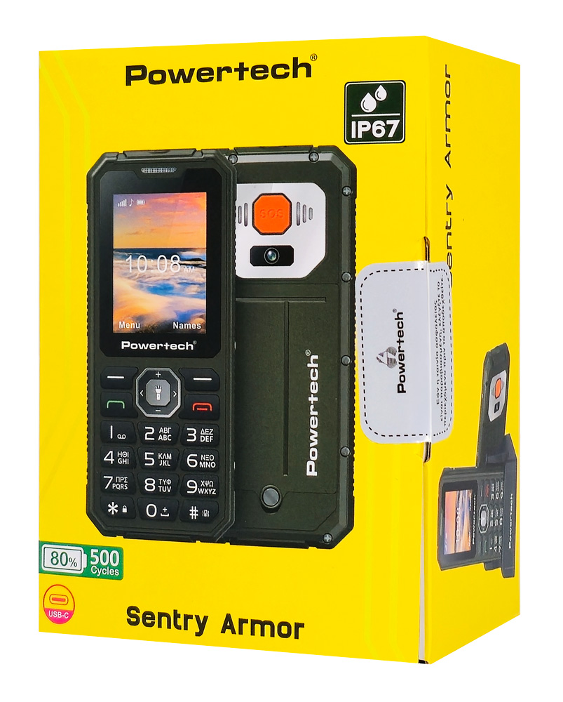 POWERTECH κινητό τηλέφωνο Sentry Armor, dual SIM, πλήκτρο SOS, 4G, IP67, μαύρο