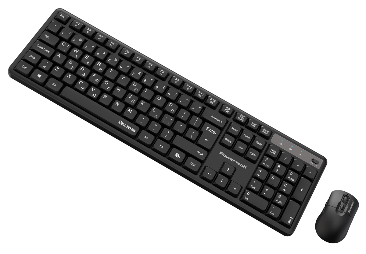 POWERTECH set ασύρματο ποντίκι & πληκτρολόγιο PT-1541, 2.4GHz, αθόρυβο, μαύρο