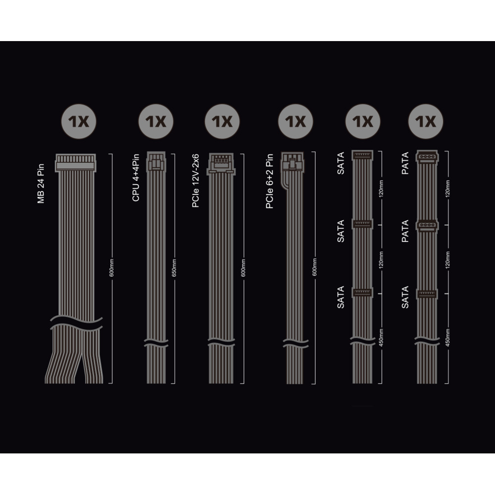 Αυτό το τροφοδοτικό είναι πλήρως ενσύρματο, πράγμα που σημαίνει ότι τα καλώδια δεν είναι αποσπώμενα. Αν και αυτό περιορίζει λίγο την ευελιξία στην εγκατάσταση, εξασφαλίζει ότι όλες οι συνδέσεις είναι σταθερές και έτοιμες για χρήση.