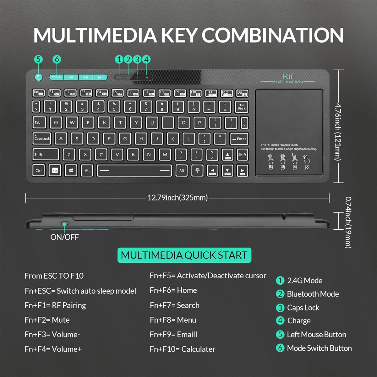 RIITEK ασύρματο πληκτρολόγιο Mini K18S με touchpad, RGB backlit, 2.4GHz & Bluetooth