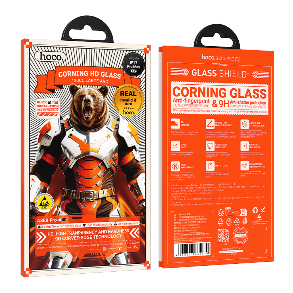 Tempered Glass Hoco Bear Shield A888 Pro Corning Glass Anti Fingerprint για Apple iPhone 17 Pro Max
