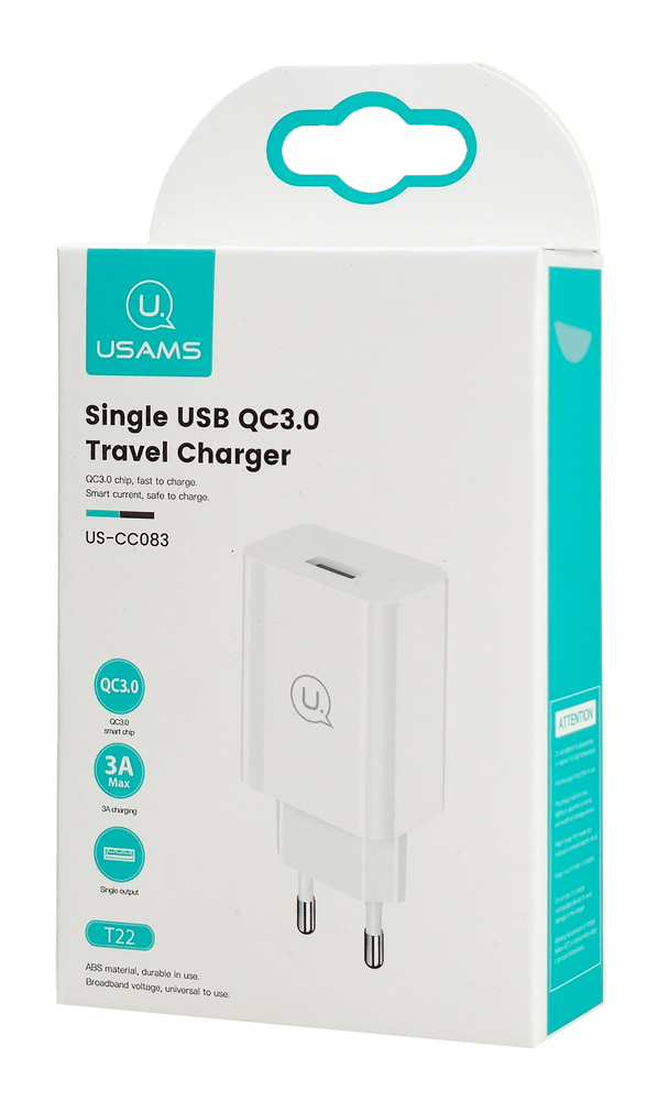 USAMS φορτιστής τοίχου T22, 1x USB, QC3.0 18W 3A, λευκός