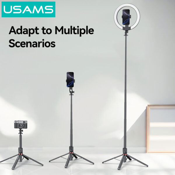 USAMS φωτιστικό δαχτυλίδι LED ZB323 με τρίποδο & βάση smartphone, μαύρο